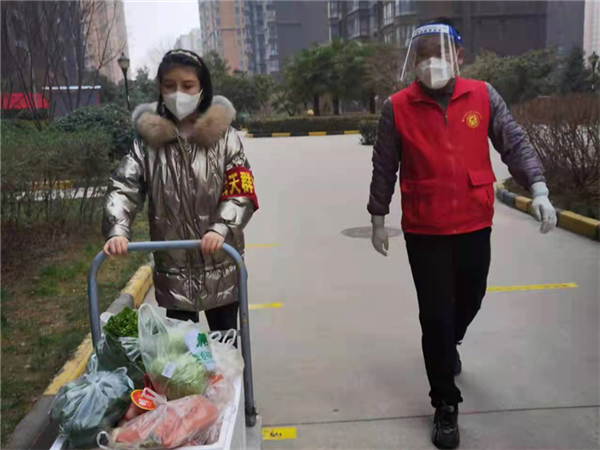 同样还有王韧,在保证做好九鼎项目部各项防控措施落实到位的同时,也积极参加所居住小区的防疫工作,帮助小区内本单位离退休老同志联系各类慢性病药品的登记和购买工作,帮助急需住院和看病的老同志联系医院,参加了政府给小区600多户免费蔬菜的搬用分发工作,她还负责每天在小区大门口接收住户订购的生活物资,对它们进行登记、消杀,安排逐户送达,做到让小区业主安心放心。