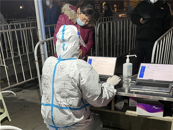 从西安疫情爆发到政府实施封控管理后,置业公司九鼎项目部员工王颖积极报名参加所在社区核酸志愿者团队,协助所在社区完成了小区近5000人次的核酸检测工作。西安的12月份已是寒冬腊月,室外温度都零下了,天气比较寒冷,但是就是这么一个廋小的女同志,为了配合社区做好核酸采样工作,每天从早到晚,一站就是6个多小时,穿再厚的羽绒服也抵挡不住室外严寒,工作结束后双手双脚已经都已经被冻的失去知觉,但是她没有后退,没有退缩,而是每天坚持上岗,乐观面对,用自己的实际行动践行一名物业工作人员的职责、一名坚强女性的风采。