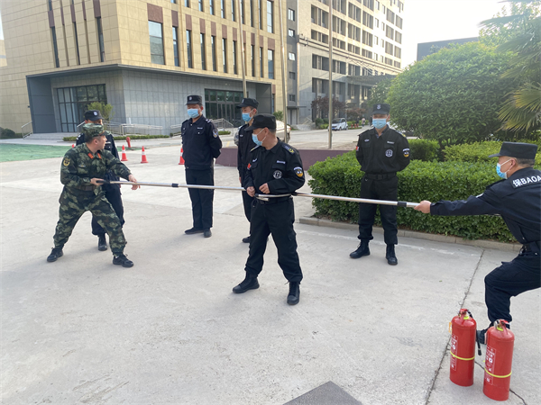 培训的内容主要涉及:保安文明用语训练,主要培养安保队伍坚持依法文明执勤;车辆指挥规范手势训练,主要对外来车辆,行人示意止步和请进的手势进行规范;防爆器材的使用,主要对防爆钢叉,警棍盾牌使用进行训练,使大家更好掌握使用方法,做好应急处置;消防器材的使用,主要对现有的ABC4型干粉灭火器如何使用和操作流程进行训练,熟练掌握初期火灾的扑救和处置程序。