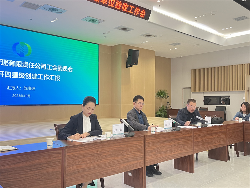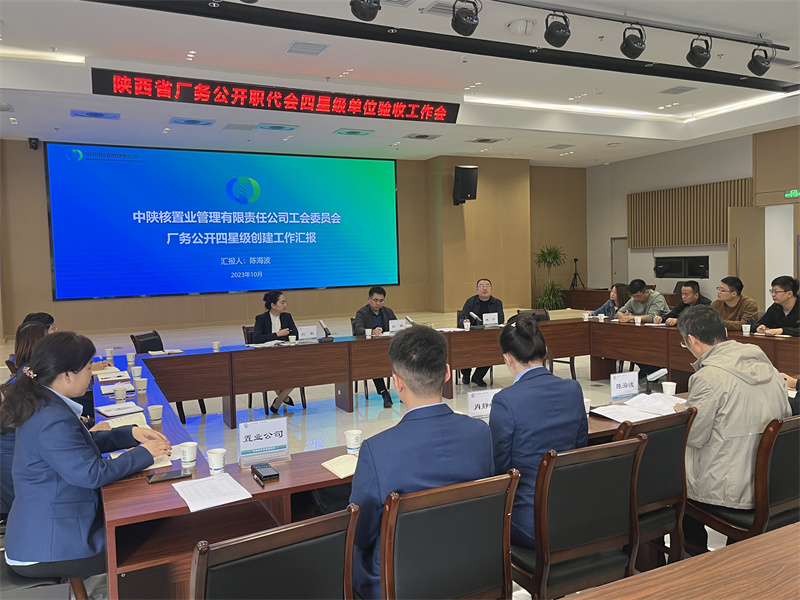 10月10日下午,陕西省厂务公开职代会四星级单位验收工作会在集团公司新二楼会议室召开。省国防工会组织民管部部长刘锋、二级调研员魏宁及集团公司工会副主席、工会办主任刘晶一行对置业公司厂务公开职代会四星级单位创建工作进行了考核验收。