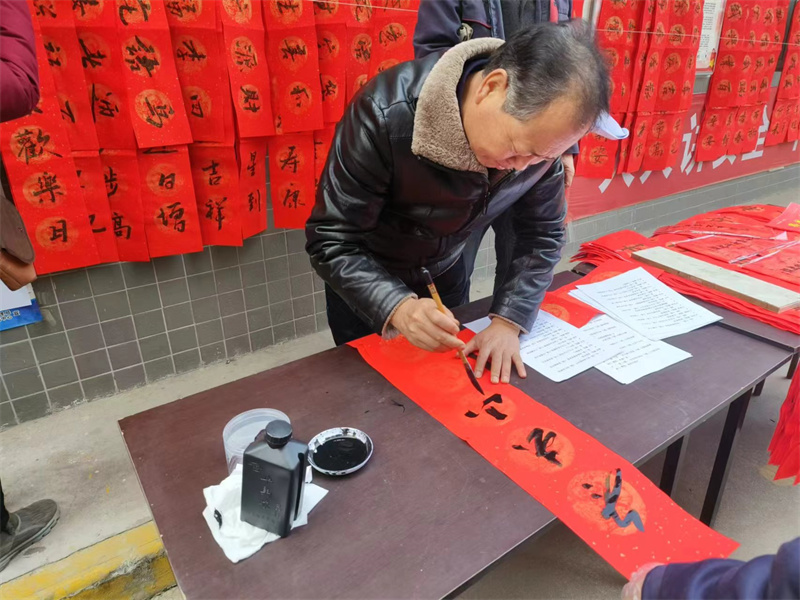 春节临近,为营造欢乐、喜庆的新春气氛,弘扬中华民族传统文化。1月29日下午,中陕核置业公司核佳园物业分公司举办了“迎新春 写春联 送祝福”活动。特邀书法爱好者王老师免费为小区居民现场书写春联。