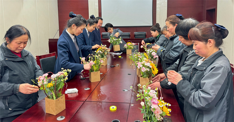 为庆祝“三八”妇女节的到来,丰富全体女职工的业余文化生活,3月8日下午,中陕核置业公司集团总部物业办举办了“柔肩担重任 巾帼展芳华”庆“三八”主题插花活动,让大家在辛勤工作之余与花为伴,享受花样年华。