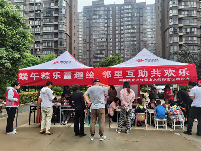 为弘扬传统文化,进一步增进物业办与业主之间的文化交流,构建和谐文明小区。中陕核置业公司山水岭秀南区物业办于2024年6月2日在小区南门举办了主题为“端午粽乐童趣绘 邻里互动共欢乐”的端午节活动。