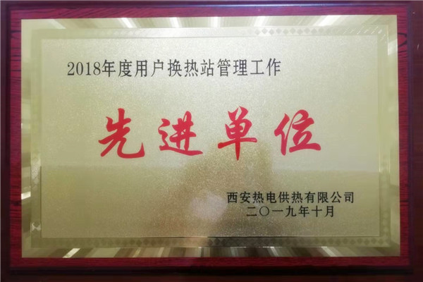 金秋十月,置业公司喜事连连。山水岭秀小区继被西安市航天基地城市管理局评为首批“生活垃圾分类达标单位”后,10月15日,被西安热电供热有限公司授予“2018年度用户换热站管理工作先进单位”荣誉称号。